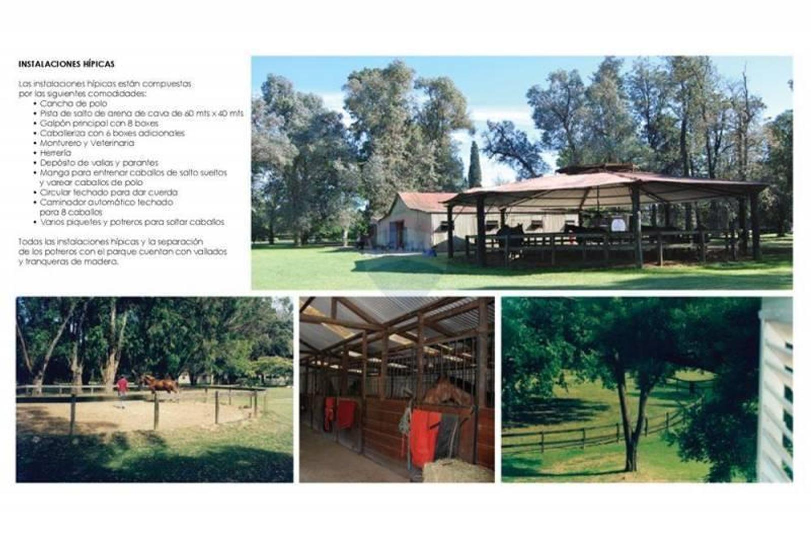GRAN TERRENO de 10.84 hectáreas, Chacra de,ubicada a 40 kilómetros en la localidad de Del Viso, Partido de Pilar, Provincia de Buenos Aires. La Inmaculada se encuentra ubicada a 50 metos de calle asfaltada, a 200 metros del Higland Park Country Club, a 300 del Country Armenia y Ayres de Pilar, limita con el Barrio Privado Altos del Pilar. La Inmaculada es un lugar para descansar donde se pueden realizar todo de tipo de actividades deportivas (salto, equitación, polo, tenis, fútbol, volley, bicicleta, gimnasia con aparatos, driving range de golf, etc). LA CASA PRINCIPAL Hall, toilette de recepción, living con chimenea, comedor, galería cubierta, sala de billar y televisión, cocina, office, despensa, dos habitaciones de servicio con baño. 4 dormitorios divididos en; Amplia suite con balcón terraza, dos dormitorios adicionales con baño completo compartimentado, segunda suite (principal) con baño completo, sauna, ducha y jacuzzi, escritorio y sala de lectura. Cuenta con sistema de calefacción central por radiadores alimentados por caldera a gas, los pisos de la recepción son de madera de lapacho entarugados y los de los dormitorios y escritorio de pinotea; Toda la casa cuenta con excepcionales vistas exteriores al parque. GIMNASIO, El gimnasio con vista a la cancha de podo cuenta con caminador, elíptico, bicicleta, set de pesas, banco remo para ejercitar piernas, brazos y pectorales y banco para abdominales, espalda, etc. SEGUNDA CASA, La Segunda Casa que consta de 1 dormitorio en suite, 2 dormitorios y un baño, living/comedor, hall de entrada, cocina, habitación y baño de servicio, lavadero. La casa tiene chimenea en el living y cuenta con piso radiante y una galería cubierta con vista al parque y a la cancha de tenis. CANCHA DE TENIS Y PILETA DE NATACIÓN, La Inmaculada cuenta con una cancha de tenis de polvo de ladrillo con riego automático, de medidas reglamentarias y una piscina para natación de 15 X 6 ubicada en el parque principal. INSTALACIONES HÍPICAS Cancha de polo Pista de salto arena de cava de 60 mts x 40 mts Galpón principal con 8 boxes Caballeriza con 6 boxes adicionales Monturero y Veterinaria, entre otras... CASA DE CASEROS, GARAGE Y DEPÓSITO. Consta de 2 dormitorios, baño, living y cocina. COD. URBANO COMPLEMENTARIO RESIDENCIAL DOS ( CR2) FOS 06, FOT 08, POSIBILIDAD DE TOMAR PROPIEDADES EN PARTE DE PAGO