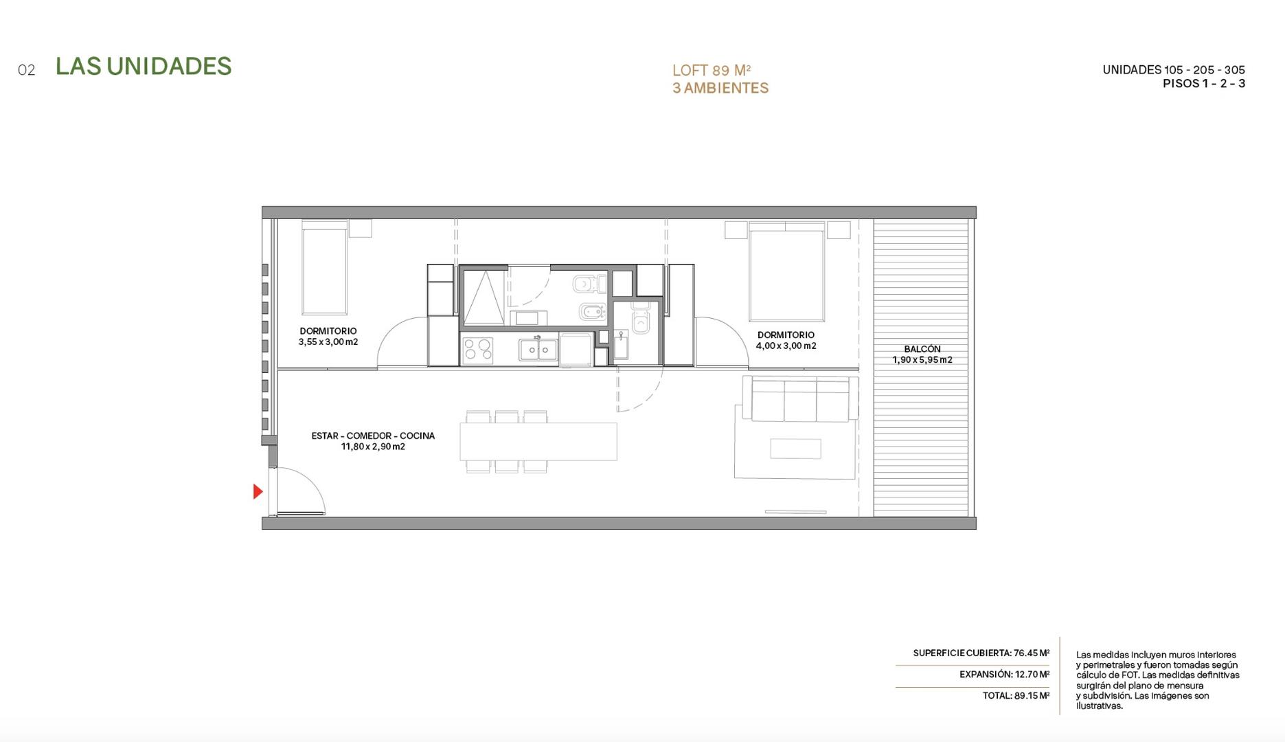 Thames Live 2 piso unidad 205 3 ambientes con cochera descubierta