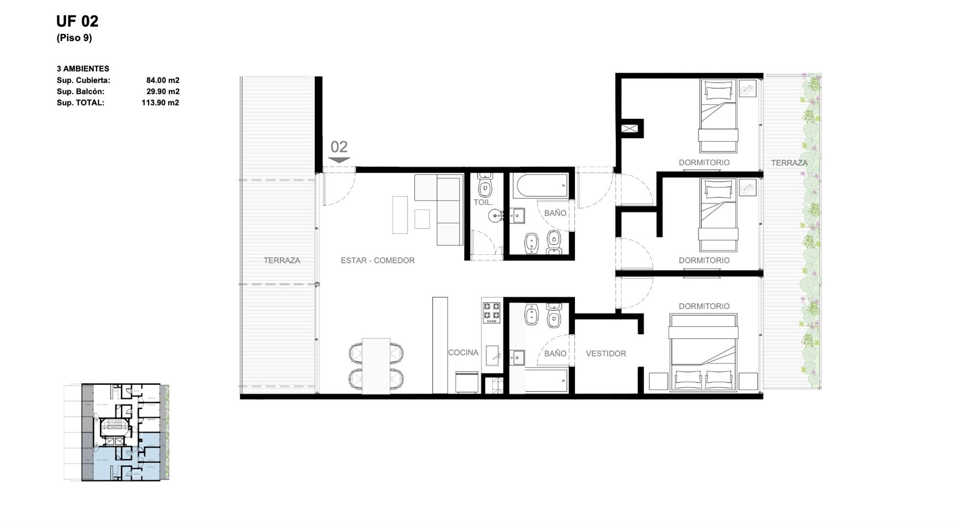 Superficie total: 113 m²