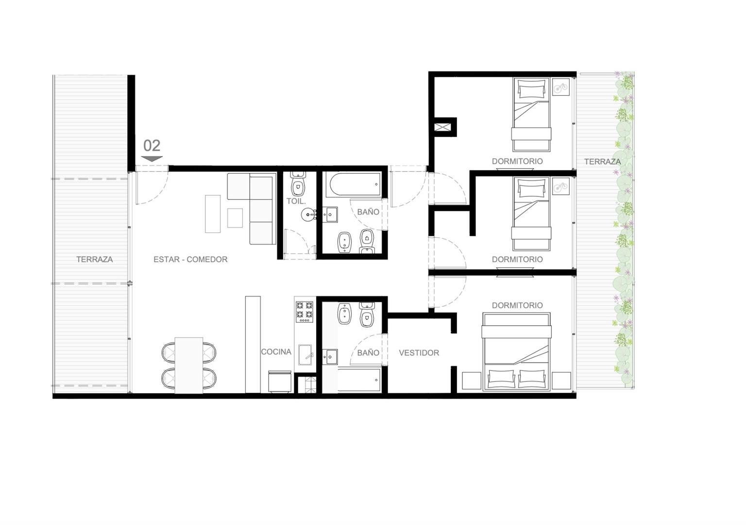 - Desarrollo de categoría con unidades de 2, 3 y 4 ambientes.